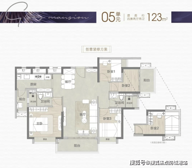 123平方米的四房户型,则是君曜府的旗舰产品。阔绰的横厅设计,面宽极大,采光通风效果极佳。四房布局,可以满足三代同堂的居住需求,或者预留出独立的衣帽间、影音室等功能空间。主卧空间宽敞,配有全景飘窗,推窗即见城市美景或江景。这款户型专为追求高品质生活的菁英人士打造,彰显了主人的身份与品味。