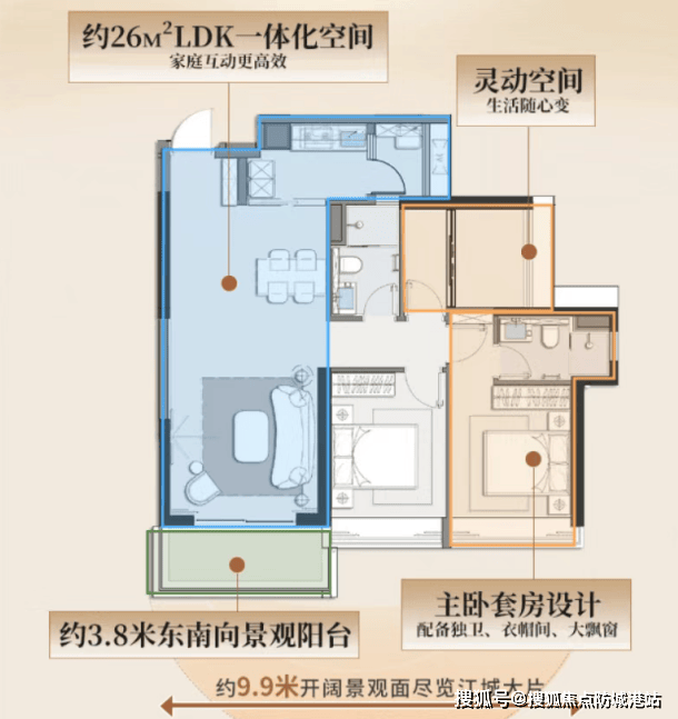 82㎡三房两厅一卫:主城稀缺小户型,总价约450万起,适合年轻家庭;