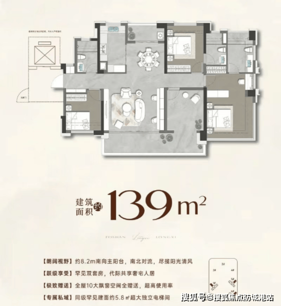 宏宇瓏熙的产品力,堪称对传统豪宅的一次“降维打击”。项目全线采用佛山最新住宅规范设计,所有户型均实现“上下飘窗全赠送”,阳台率高达30%,整体使用率突破110%,部分楼栋甚至接近120%。以热销的139㎡四房为例,南向生活阳台直面中央园林,采光面长达12米;168㎡与196㎡东南向大平层,则拥有超7米面宽客厅与双主卧套房设计,空间尺度媲美千万级豪宅。尤为值得一提的是,项目层高达3.15米,远超市场普遍的2.9-3米标准,配合全景落地窗,营造出通透敞亮的居住体验。1栋作为最后一栋东南向楼栋,不仅视野无遮挡,更因低密度布局保障了私密性与静谧感,成为改善客群眼中的“终极之选”。