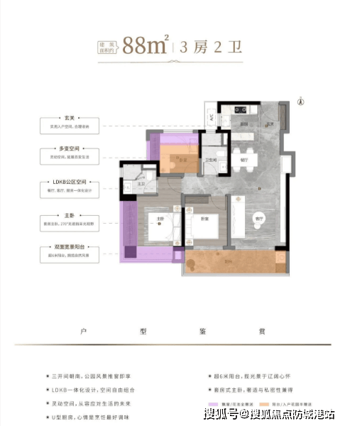 6.2 88㎡三房两厅两卫:超长景观阳台,生活更有格调