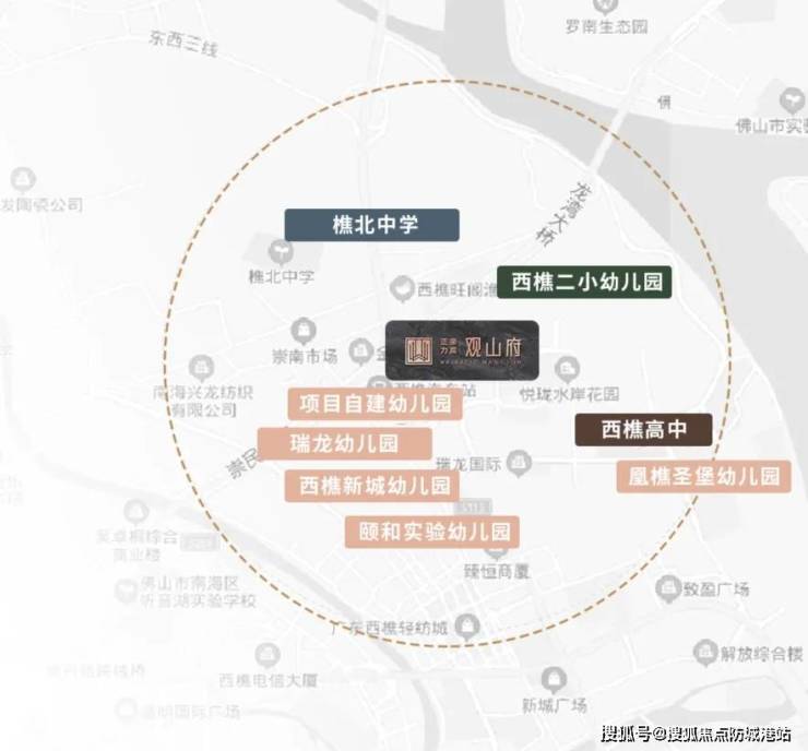 为了给孩子们创造一个优越的学习环境,项目内部自建了一所幼儿园,并且在2公里范围内分布有多所知名学校,如樵北幼儿园、西樵二小、樵北小学、樵北中学、西樵高级中学以及南海中学等,涵盖了从学前教育到高中教育的各个阶段。丰富的教育资源无疑增加了项目的吸引力。
