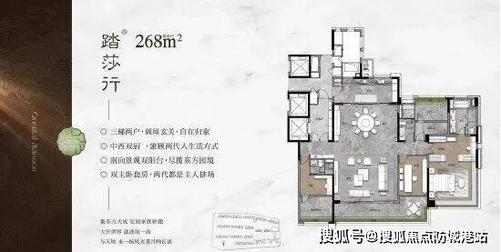 【产品配置】:2T4塔楼、2T2、3T2板楼;建面约107-268平方米户户朝南