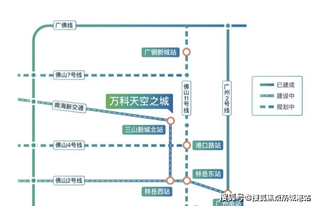 万科天空之城位处三山新城的核心位置,靠近南海新交通三山新城北站,周边地铁线路密布,交通十分便利。通过现有的佛山轨道2号线、南海新交通两条轨道交通,可以轻松直达广州南站;而未来规划中的多条地铁线路将进一步提升出行的便捷性。