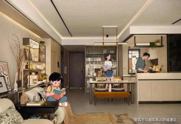 爷爷泡茶闲谈,孩子在地毯上玩耍;开放式厨房飘来妈妈烘焙蛋糕的香气,阳台上爸爸正给盆栽浇水——多代同堂的日常,在阔绰空间里各自忙碌,却又抬眼即见。