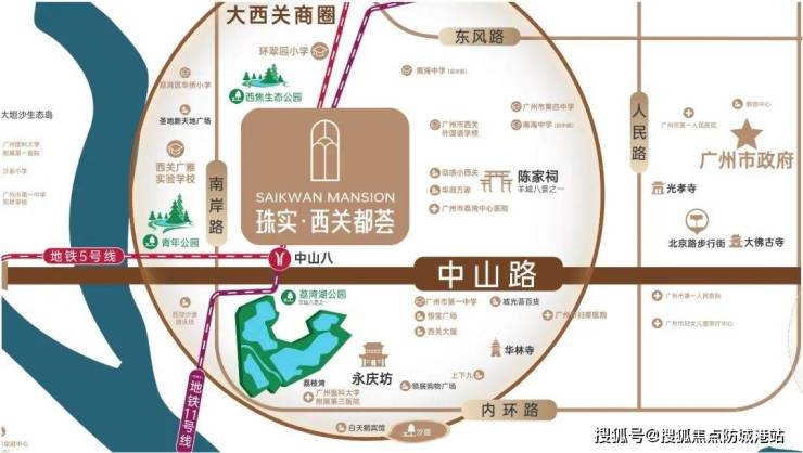 :直线距离约500米即达地铁5号线、11号线(在建)中山八站,0换乘直达白鹅潭、珠江新城CBD、琶洲CBD,高效串联广州核心商务区;