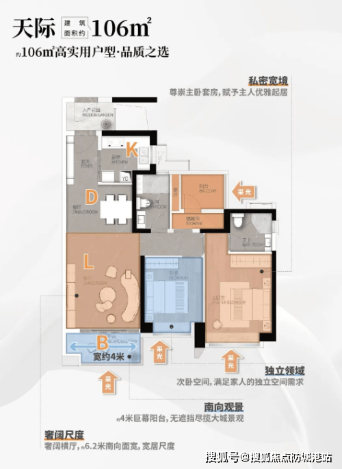 广地花园观灏组团最新推出的悦景楼座,面积段分别为86㎡、96㎡、100㎡三房户型,多面采景,三面望水,通透采光,充分利用户型的每一寸空间,打造全方位人性化居所。