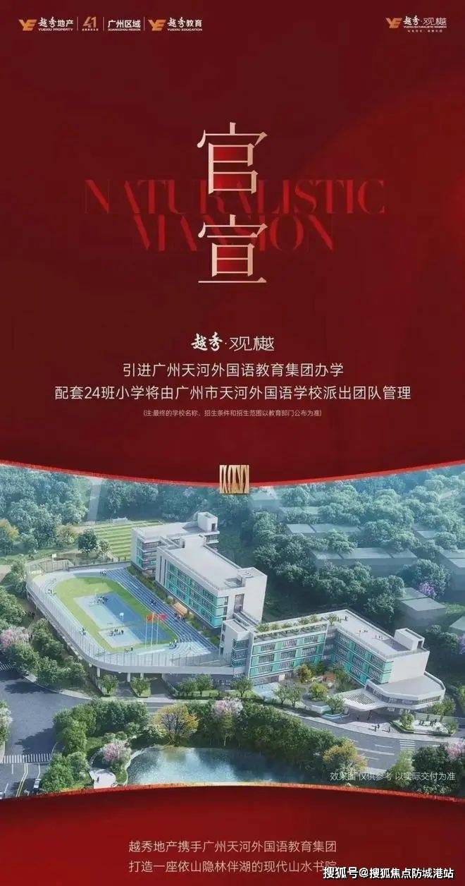 项目将引进广州天河外国语教育集团办学,配套24班小学将由广州市天河外国语学校派出团队管理!