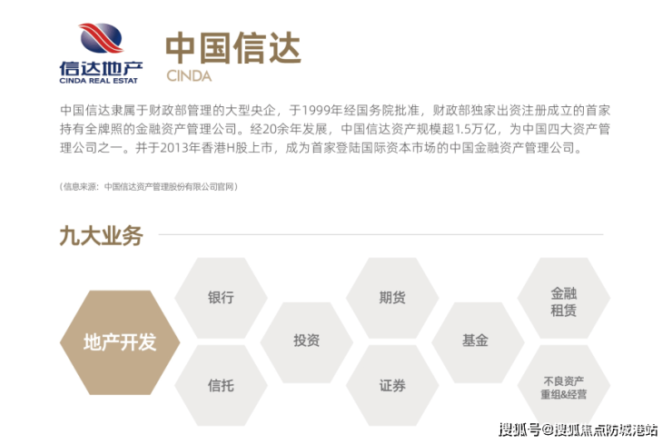 信達地產:中國信達旗下唯一房地產開發業務運作平台,遍佈30多個大中城市。