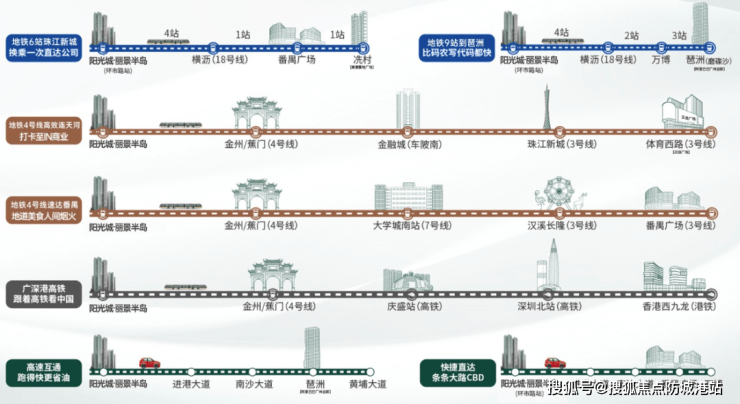 阳光城丽景半岛地理位置优越,距离最近的地铁站——蕉门站和金洲站均在1公里左右,步行即可到达。此外,项目还临近规划中的15号线,未来开通后将能快速接驳至18号线,直达珠江新城,进一步提升区域的交通便捷性。