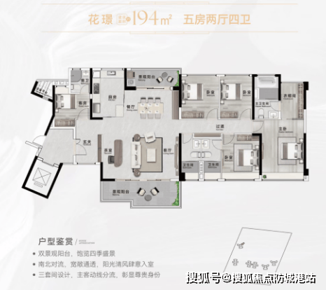 194㎡五房2厅4卫(三套房):奢华配置,双景观阳台,观景生活两不误。