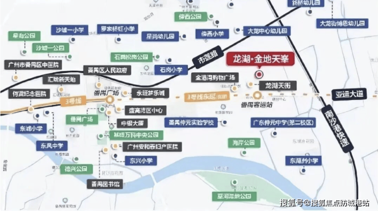 项目位于广州中轴核心区域,属于番禺城央板块,这一板块近年来成为城市发展重点。番禺区通过多条城市主干道和轨道交通线的建设,不断强化中芯区域价值,形成“城央中心+TOD综合体+商业天街”叠加的城市核心生活圈。龙湖·金地天峯凭借其区位优势,一步即享区府、政务中心、文化馆和商业中心资源,同时周边教育和医疗配套齐全,为高品质生活提供坚实保障。