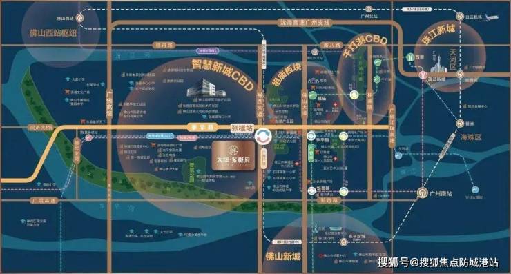 大华·紫樾府项目位于张槎中心区,地处禅西大道西侧、规划三路北侧,西侧为海湾城,南侧为中海凤凰熙岸,周边人居氛围浓厚,临近佛山地铁2号线和建设中的佛山地铁4号线,以及广佛环线交汇的张槎TOD。