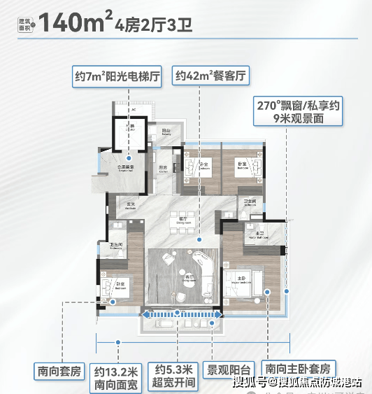 190㎡观湖旗舰:17米南向面宽+270°飘窗