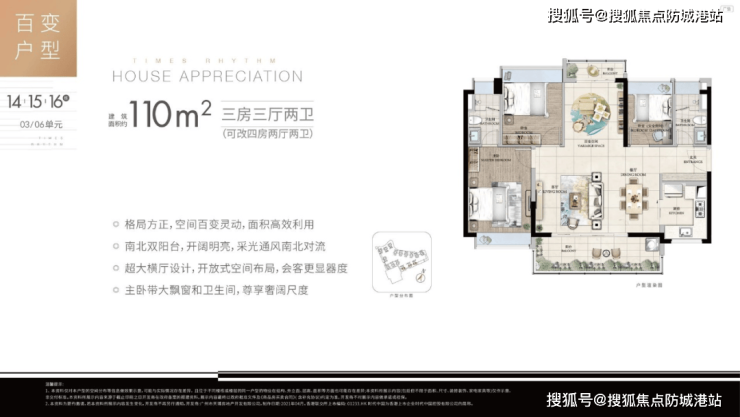 110㎡四房:南北对流双阳台,通风效率较周边项目提升25%。