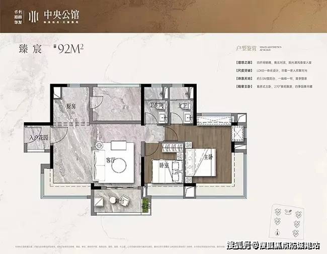 竖厅设计:客餐厅一体化,连接3.5米南向阳台,通风采光极佳;