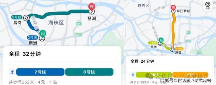 项目家楼下就是地铁广佛线和2号线的交汇处南洲站,属于双地铁上盖,在这里乘坐地铁3个站可到客村、5站珠江新城、9站到琶洲、8站到万博/金融城等地,非常方便,而且项目的地库可以直通地铁,后续建成后出入归家都是全程风雨无阻。