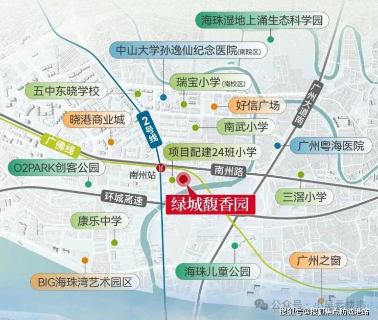 项目门口的内环路东晓南放射高架桥(南洲路至盈丰路段),目前也正在进行局部拆除、重建,这条路与海珠湾隧道对接,开通后绿城业主们20分钟左右就能去到广州南,预计今年就会通车。