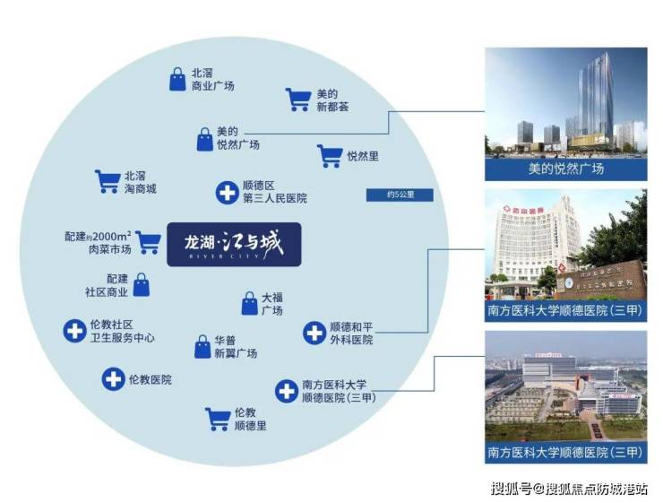 项目位于主城居住区,近享5公里全维醇熟生活圈。周边有北滘商业广场、保利顺德里、华侨城PLUS等7大旗舰商业环伺,北海小学、汇贤实验中学、伦教中学等10所名校为孩子的成长保驾护航。南方医科大学顺德医院、顺德妇幼保健院两大三甲医院为居民健康提供坚实保障。