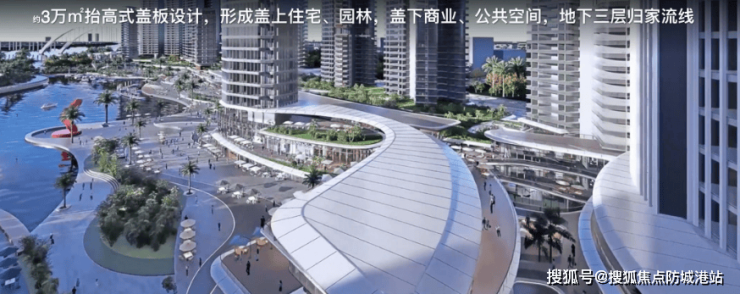 休闲娱乐:项目借鉴新加坡设计理念,打造了一个抬高式盖板设计的滨水共融综合体,集住宅、园林、滨水商业与亲水步道于一体,提供类似珠江新城广粤天地的生活体验。