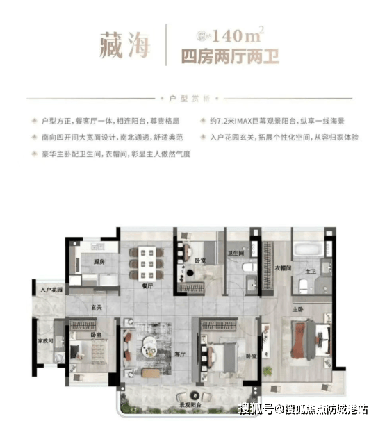 5栋:两梯四户,40层高,户型128-142㎡,单价约2.6-3.2万/㎡,适合追求海景与实用兼得的家庭。