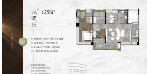 梯户比配置高端,板楼以 2 梯 2 户、3 梯 2 户为主,塔楼为 2 梯 4 户,其中 143㎡户型实现专梯入户(突破传统 200㎡+ 户型才有的配置),268㎡户型为 3 梯 2 户(含保姆电梯),平均一部电梯仅服务 13-38 位业主,私密性与便捷度拉满。主力户型亮点突出:125㎡四房(交付时额外拓展 1 个房间),空间灵动实用;143㎡四房,专梯入户,LDKG 一体化设计,南北对流;268㎡四房,双主套设计,LDKG 近 120㎡大方厅,主卧配备 270° 全景飘窗(尺度超 9 米)、双衣帽间与双台盆,品质感十足。