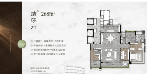 精装准现楼交付(2025 年 8 月起),减少等待周期,品质所见即所得;户型覆盖 107-268㎡全改善面积段,专梯入户、双主套等设计满足高端家庭多元化需求。