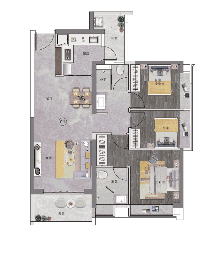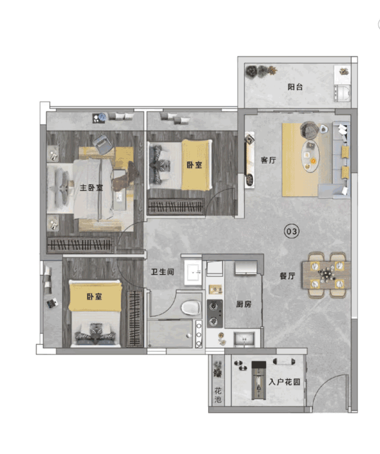 78㎡户型做到 2+1 房,是刚需上车优选。
