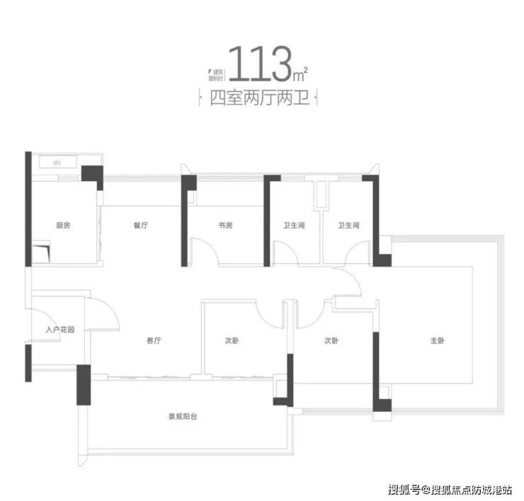 113㎡四房两卫:南北对流+大阳台,厨房飘窗巧妙转化为餐边柜,增加储物与互动功能,体现华润对广府生活的深度理解。