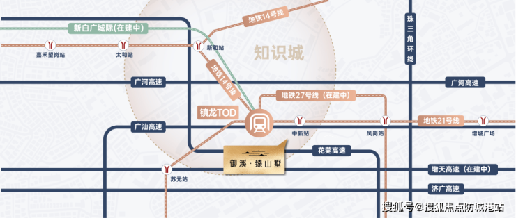 地铁:距地铁21号线中新站约500米,一站可达镇龙TOD,四站直达天河。