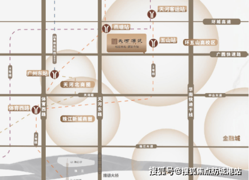 (2)地铁配套:项目周边集中了地铁1号线、3号线、6号线,可谓地铁环绕,虽然大部分地铁站距离小区在3公里左右,超出了步行可接受的距离范围,但项目规划有社区接驳巴士,无缝对接各大地铁站,方便业主出行。根据2026年3月11日官方实测,各地铁站距离及接驳方式如下:地铁1号线广州东站,距离项目3.2公里,乘坐社区接驳巴士10分钟即可到达,地铁1号线可直达体育西路、东山口、公园前、黄沙等商圈,运营时间为6:00-23:30,发车间隔2-3分钟,出行十分便捷;地铁3号线五山站,距离项目2.8公里,乘坐社区接驳巴士8分钟即可到达,地铁3号线可直达珠江新城、广州塔、番禺广场、白云国际机场等区域,运营时间为6:00-23:00,发车间隔2分钟,是业主前往珠江新城、机场的首选交通方式;地铁6号线燕塘站,距离项目3.5公里,乘坐社区接驳巴士12分钟即可到达,地铁6号线可直达北京路、文化公园、浔峰岗等区域,运营时间为6:00-23:15,发车间隔3分钟,满足业主前往越秀区、荔湾区的出行需求。