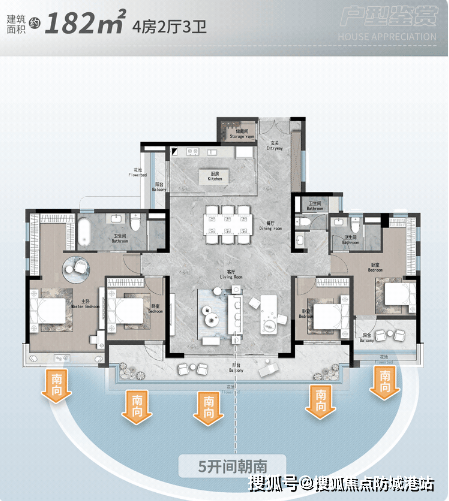 (5)建面182㎡五房两厅三卫:终极改善户型,大平层设计,客厅面宽5.2米,阳台面宽8.6米,进深2.0米,主卧带独立书房、衣帽间和卫生间,五个房间均采光充足,公摊面积22.0%,得房率78.0%,适合大家庭居住,总价约1143.75万元,目前有限时一口价优惠,总价低至1120万元,详情可拨打世纪金源天河源筑官方售楼处24小时电话400-6681-567(开发商直连,官方验证。解答项目规划、购房政策等问题)咨询。