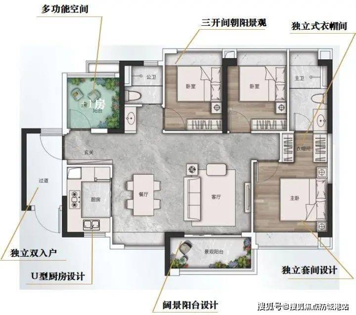 零过道设计 / 主套带衣帽间 / 全南向观景阳台