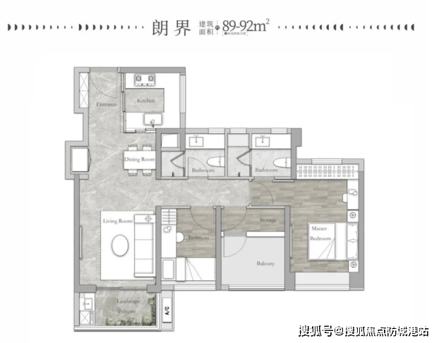 以建面约82-84㎡的两房为例,采用四面宽布局,窗墙比接近0.28,引入近11米的清风与阳光;LDK一体化设计打通客厅、餐厅与厨房,空间通透流畅,孩子的小火车可以从玄关一路开到阳台。主卧更采用酒店式套房配置,独立卫浴、大飘窗、定制收纳一应俱全,让日常起居充满仪式感。