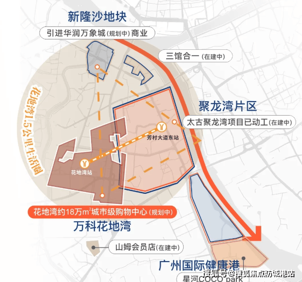 万汇天地·朗庭落子于荔湾区花地湾板块,这里并非传统意义上的老城区边缘,而是白鹅潭—聚龙—花地湾“黄金三极”核心交汇处。在半径约2公里范围内,三大组团协同发力,共同构建珠江西岸最具活力的城市新中心。国家战略加持之下,这片区域正从历史文脉中焕发出前所未有的现代都市能量。