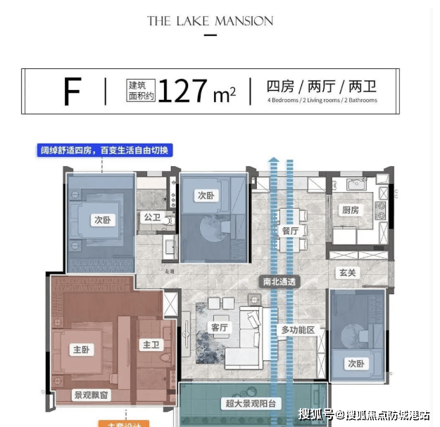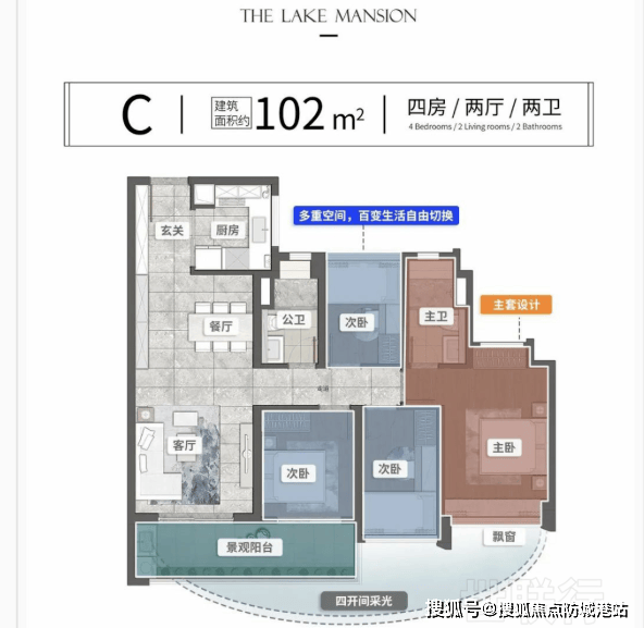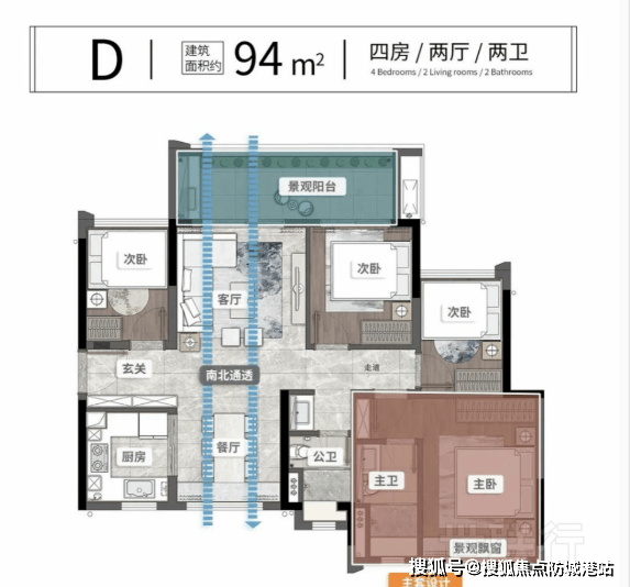 94㎡南北对流四房:南北对流,极致采光通风,主套超21㎡