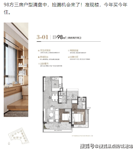 中海保利朗阅主打建面约 98-182㎡的舒居三至四房,户型设计围绕 “实用性、舒适度、景观性” 三大核心,覆盖从刚改到高端改善的全龄需求,且使用率达 96%-100%,在同面积段产品中表现突出。其中,建面约 98㎡三房户型处于清盘阶段,为准现楼产品,今年买今年住,适合首次改善或三口之家,户型布局紧凑实用,南向设计保障充足采光,满足基础居住需求的同时,兼顾性价比;建面约 128㎡四房为现楼产品,空间尺度更宽裕,适合多人口家庭,功能分区清晰,动静分离,能平衡居住私密性与家庭互动需求。