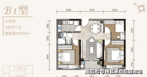 90㎡3房2卫:总价约360万,空间尺度进一步升级,满足家庭成长需求。