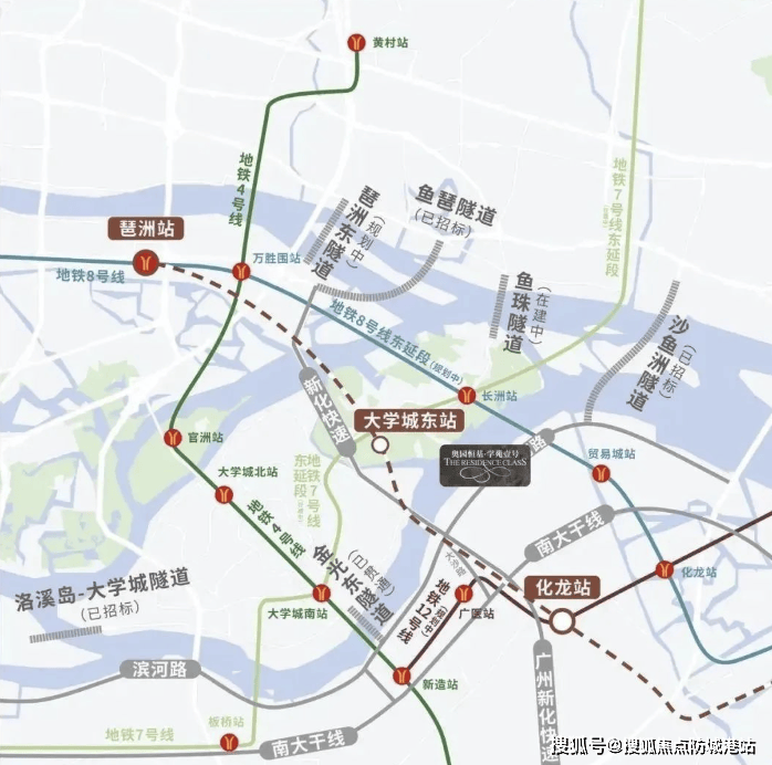 恒基·学苑壹号所在的琶洲南板块,虽非传统“区府”所在地,但依托“第三中轴+TOD交通枢纽”的双核心联动,形成独特的发展优势。琶洲南作为广州重点发展的新中轴线节点,享受政策倾斜与资源投入,相当于“城市新核心”;周边地铁4号线新造站及未来规划线路形成小型TOD枢纽,聚合交通、商业、居住功能。
