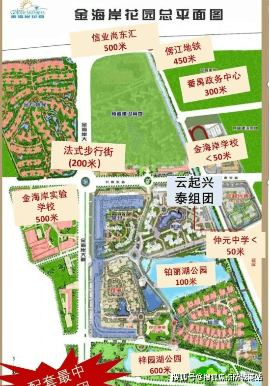 金海岸花园由广州番禺置业南雅房地产开发,总占地面积达 1000 亩,是番禺广场板块少有的超大规模商住大城。项目整体设计融合现代美学与生态理念,内部打造超 20 万方艺术风情园林,搭配 50000 平米珀丽湖公园及 3 公里江岸翠堤,真正实现 “住在公园里” 的居住体验。