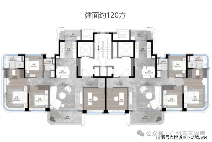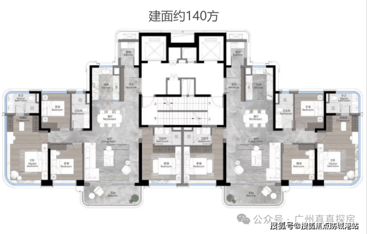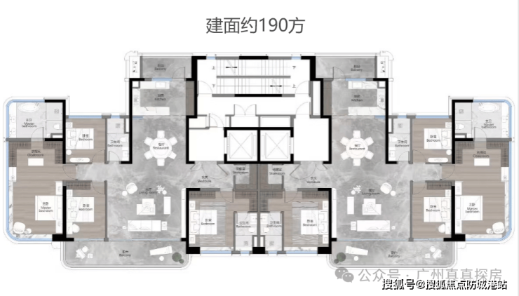 180㎡四房:双主卧设计,中西双厨,配备家政间及独立玄关,适合多孩家庭