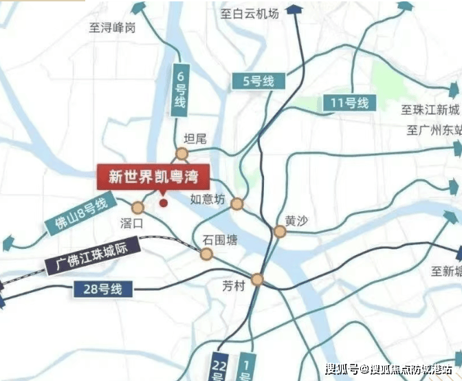6. **社区配套便利**:新世界·凯粤湾自身社区配套成熟完善。内部打造了6万㎡人车分流阳光园林,采用“一轴三进四院”布局,涵盖亲子泳池、全龄健身区、樱花步道等12大主题空间,绿化率达35%,负氧离子含量是市中心的3倍,为业主提供了一个亲近自然、休闲健身的好去处。项目自带2万㎡社区商业街,满足业主日常生活购物需求,小区门口有钱大妈、肉菜超市、快餐店和一些知名餐饮,生活氛围浓厚。虽然周边目前没有大型商场,但项目属于白鹅潭范围,附近规划有万象城、太古汇等高端商业体,未来商业配套将更加丰富。交通上,除了临近的地铁线路,还有门口的公交车站,自驾出行也十分便捷,坐拥双大桥(珠江大桥、鹤洞大桥)、三隧道(珠江隧道、洲头咀隧道、如意坊隧道),构建起立体交通体系,极大提升了业主的生活效率与品质。