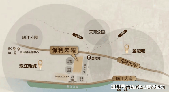 保利天曜位于天河区员村二横路,属于金融城西区的核心地段。项目距离地铁5号线与11号线交汇站——员村站约900米,步行仅需15分钟。此外,周边还有华南快速干线、黄埔大道中、临江大道和科韵路等主要交通线路,出行极为便捷。未来,随着11号线的开通,居民可以直达琶洲和天河CBD,进一步提升了项目的交通优势。
