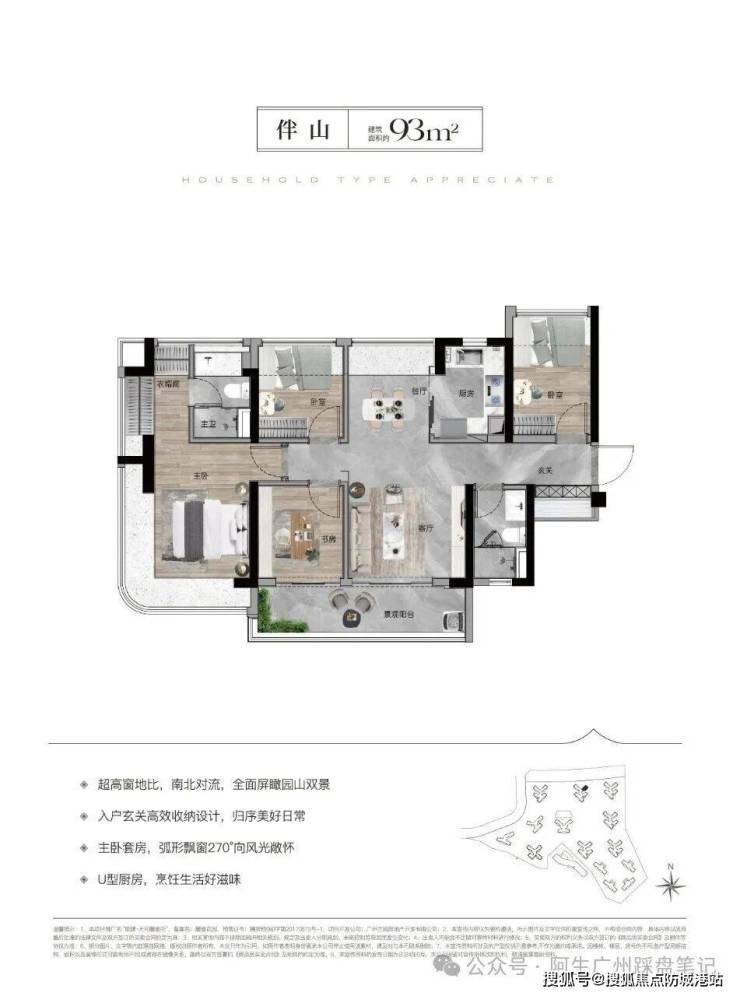 建面约 93㎡东南 / 西南向三房两卫户型 改善入门标杆之作