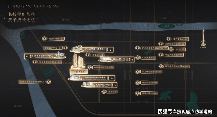 中旅天宸府对口的是省一级昌岗中路小学,直升广州市五中附属初级中学。昌岗中路小学创办于1950年,是海珠区的名校之一,以其卓越的教学质量和丰富的课外活动著称。广州市五中则是海珠区的重点中学之一,享有较高的声誉。这样的教育资源配置为孩子的成长提供了坚实的基础。