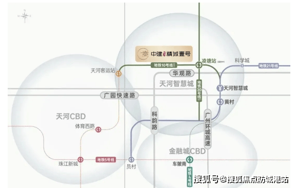 即便当前距离最近的地铁站——21号线天河智慧城站约1.8公里,但对于习惯开车的人来说,并非硬伤。项目周边公交线路也在逐步完善,未来还将受益于地铁10号线延长段与30号线规划站点(华观站) 的建设推进。