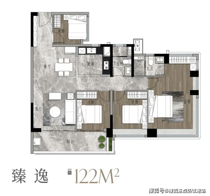 空间利用率之王:122㎡四房两卫(总价 470-485 万元)