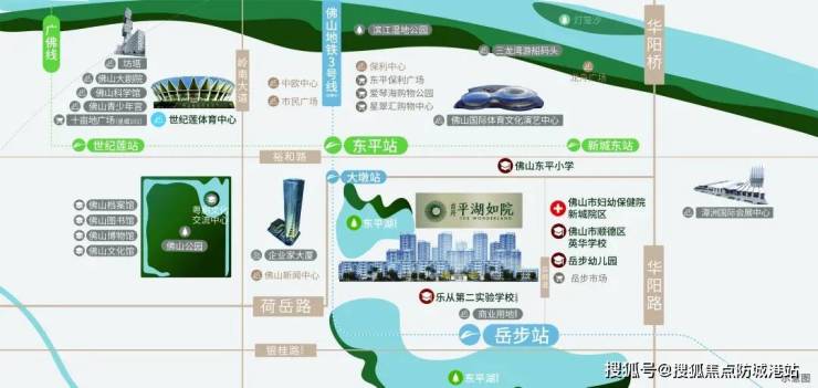 轨道交汇:300米岳步站:串联佛山地铁3号线(在建中) 、14号线(规划中),通达亚艺、北滘商圈 2站到东平站:接驳广佛线,广州地铁28号线(规划中), 佛山地铁6号线(规划中),广佛环线(在建中)通达千灯湖及广州荔湾、琶洲。