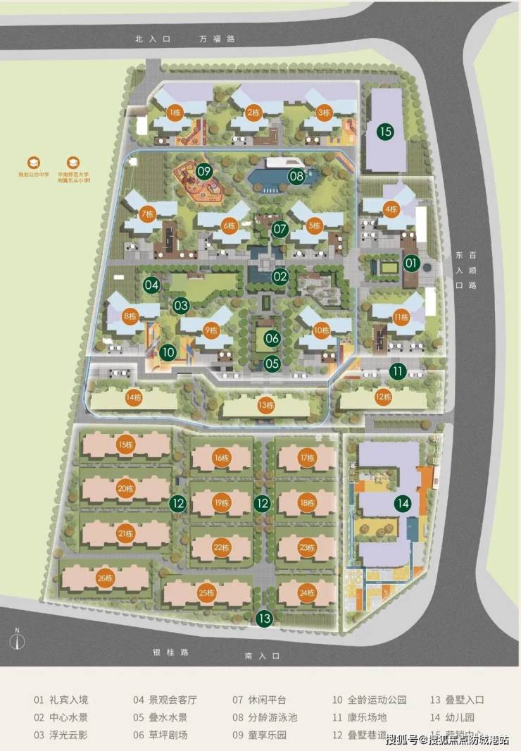 项目由14栋洋房住宅(涵盖11栋高32层的高层洋房、3栋高17层的小高层洋房)以及12栋叠墅组成。