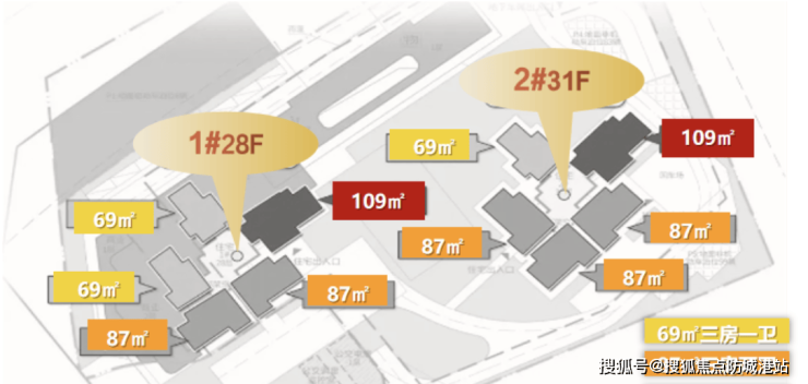 项目主力户型为建面约69-109㎡的三至四房,科学布局动静分区,南北通透设计保证通风与采光。小户型兼顾舒适客厅与多功能卧室,中户型强调家庭空间使用率及社交功能,大户型则提供奢阔主卧套房及独立卫浴设计,满足改善型家庭的多样化需求。