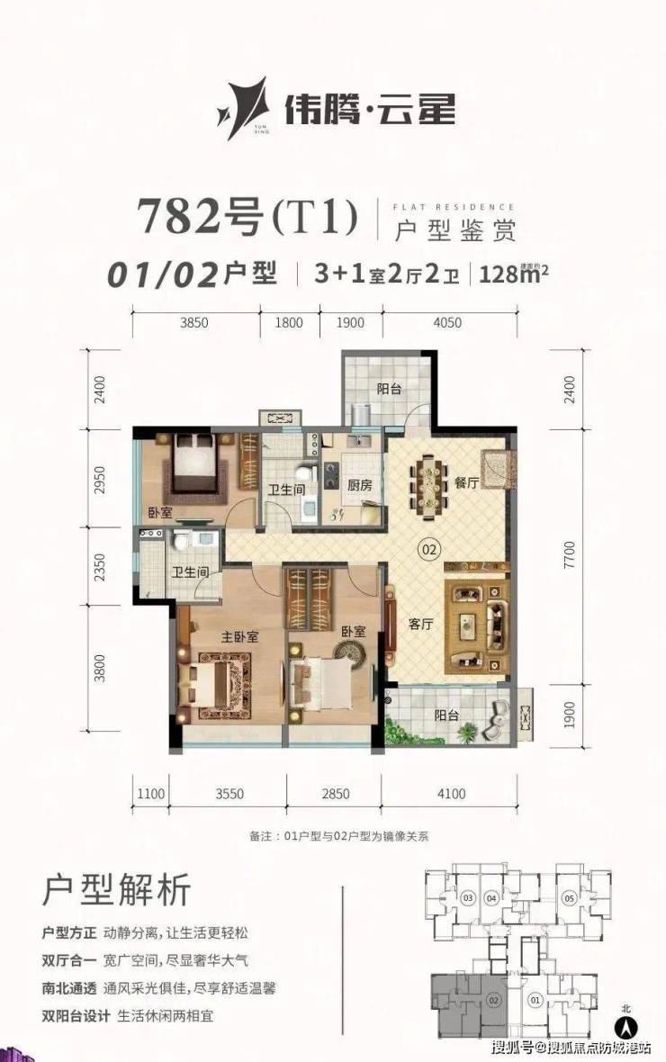 伟腾云星推出的压轴楼王T3栋共有130套房源,户型面积从82平方米至131平方米不等,涵盖二房到三房的选择。户型设计南北对流,带入户花园,赠送面积大,超宽楼距,前后无遮挡,享有白云山景观。